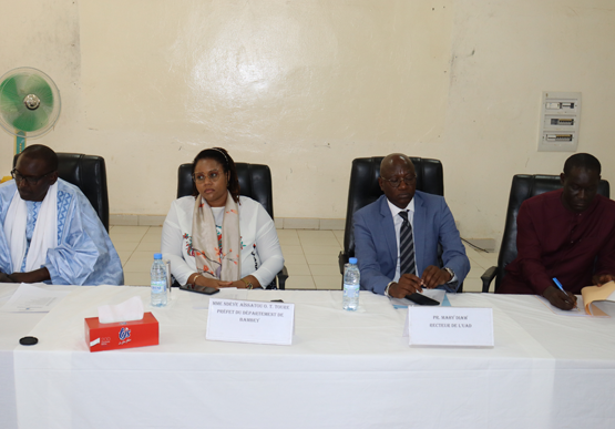 Le petit amphithéâtre de l'UAD a abrité la seconde partie de cette passation de service, en présence de Mme Aissatou BA Touré, Préfet du département de Bambey, du Recteur de l'Université Pr Mahy DIAW et plusieurs autres autorités administratives, autorités locales et autorités religieuses.